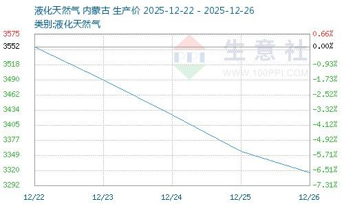 近期天然气价格下跌。主因国产气及进口资源供应充裕,库存处于高位;暖冬削弱采暖需求,工业和车用消费疲软,终端采购意愿低迷;管道气低价替代LNG,短期天然气行情偏弱下行。